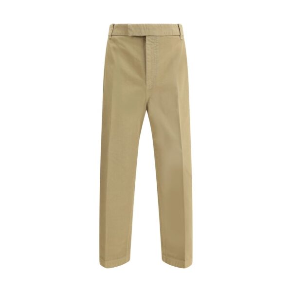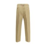 Thom Browne’s Melbourne cotton Pants are a stylish design with a straight-leg cut that gives a refined silhouette. The front closure consists of a hook, button and zipper for a secure and stylish fit. Two side welt pockets and two buttoned back welt pockets offer practicality and a touch of class. The iconic tricolor patch applied to the back adds a distinctive brand detail. With a high waist, these pants combine classic elegance and modernity, perfect for a sophisticated and timeless look.