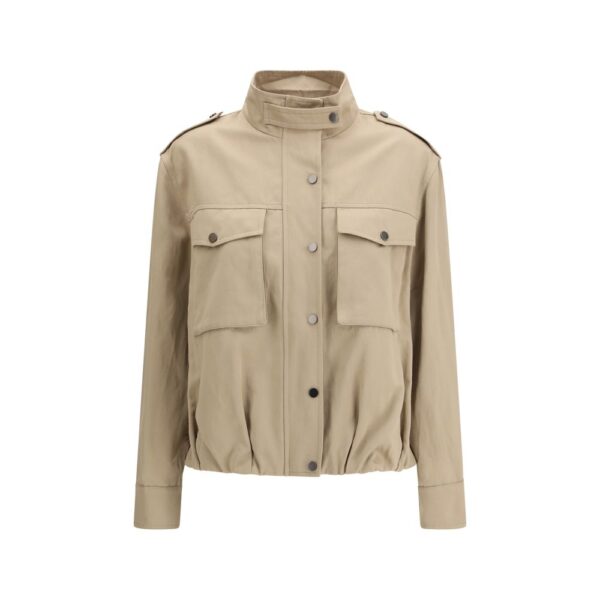 Final Cost: After CouponThe Jacket by Brunello Cucinelli blends functional detailing with the brand’s understated sophistication. Its double closure with zip and snap buttons ensures practical versatility, while the stand collar with snap fastening adds a clean, structured finish. Patch pockets with flaps lend an authentic utility touch, complemented by snap-adjustable cuffs. The unlined construction keeps the design lightweight, and the elasticated hem shapes a comfortable, modern silhouette.