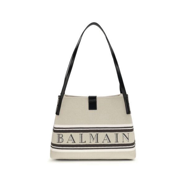 The canvas Shoulder Bag by Balmain is the ideal accessory for a casual yet sophisticated look. Featuring a jacquard logo and Balmain lettering, this bag has a practical interior with a patch pocket for easy access to your belongings. The magnetic closure ensures security, while the double handles offer comfort and style. Perfect for completing your everyday outfit with a touch of elegance.