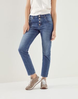 Elevate your denim game with the pristine sophistication of BRUNELLO CUCINELLI women’s pants. Exhibiting a rich SOFT BLUE DENIM hue accented with a tasteful MUSTACHE effect, these Italian-crafted pants resonate with contemporary elegance. The exquisite blend of 97% cotton and 3% elastane promises a harmonious balance of comfort and luxe. Cut with precision, these pants offer a seamless transition from business chic to evening glamour. Capture the essence of luxe styling with BRUNELLO CUCINELLI — a statement of discerning taste and timeless fashion.