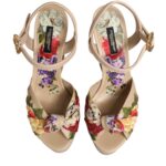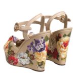 Dolce & Gabbana - Beige Floral Ankle Strap Wedge Sandals Shoes