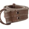 is crafted from brown leather canvas, this classic belt featuring rustic-tone hardware and a round buckle fastening.