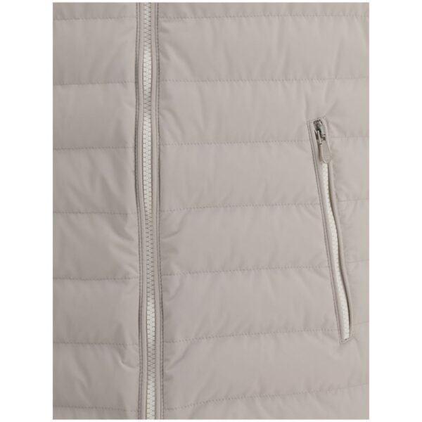 Final Cost: After CouponBrunello Cucinelli’s Down Vest is a stylish and functional garment featuring a high collar that offers added protection and warmth. The front zipper closure ensures practicality, while the two welt pockets with side zippers add functionality without compromising style. The monochrome pattern lends a clean, sophisticated look, while the quilted design and all-over padding ensure optimal comfort and warmth. A perfect garment to face the coldest days with elegance.