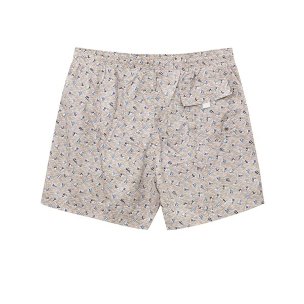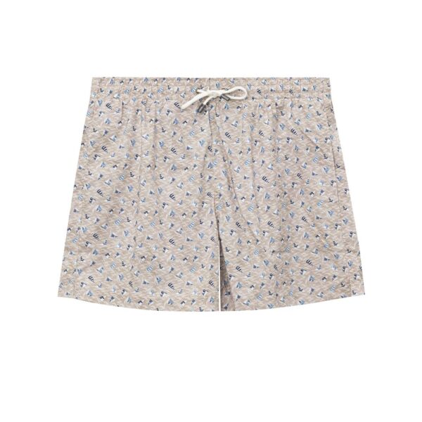 Boxer Swimsuit with Canali Sails Print. In beige with allover print in blue/light blue, elastic waist with adjustable drawstring, two side pockets and one back pocket with flap, internal mesh. Lightweight technical fabric for quick drying.