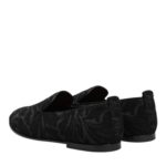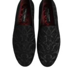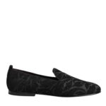 nloafers, crafted from luxurious black brocade fabric. Designed with a sleek slip-on silhouette, they offer both comfort and sophistication, making them perfect for black-tie events or elevating tailored looks with a statement finish.