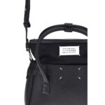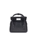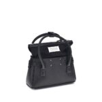 Margiela’s 5AC Leather Handbag combines sophisticated design and functionality. Featuring a double round stiff handle and a removable and adjustable chain strap, it offers multiple modes of use. The top closure with a double-slider zipper provides security and convenience, while the flat interior pocket allows for better organization of items. The front of the bag is embellished with the iconic signature patch and embroidered monogram, a symbol of the brand’s elegance. Metallic feet at the base protect the bag and ensure stability, making it a versatile and refined accessory for any occasion.