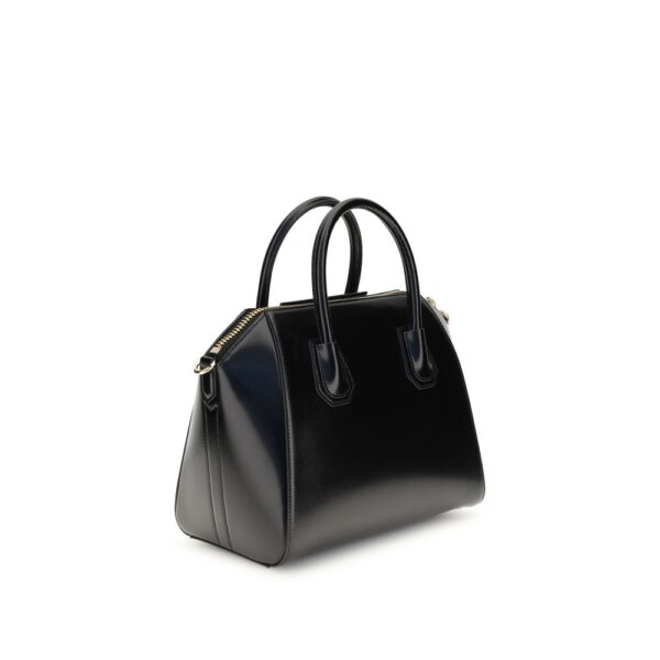 Givenchy’s Antigona small Handbag combines elegance and practicality in a refined design. It features a zipper closure, leather handles and an adjustable and removable shoulder strap for different modes of use. The front features a pentagonal appliqué with the GIVENCHY signature embossed in gold, while metallic details with a gold finish add a touch of luxury. Inside, a main compartment is flanked by two flat pockets and a zipper pocket for optimal organization.