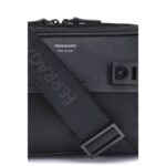 The Ferragamo Gancini buckle Shoulder Bag combines style and functionality with a mix of technical fabric and hammered leather. The roomy interior with zip and a back pocket make it practical, while the patent-finish side buckles and custom jacquard ribbon shoulder strap add a distinctive touch.