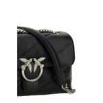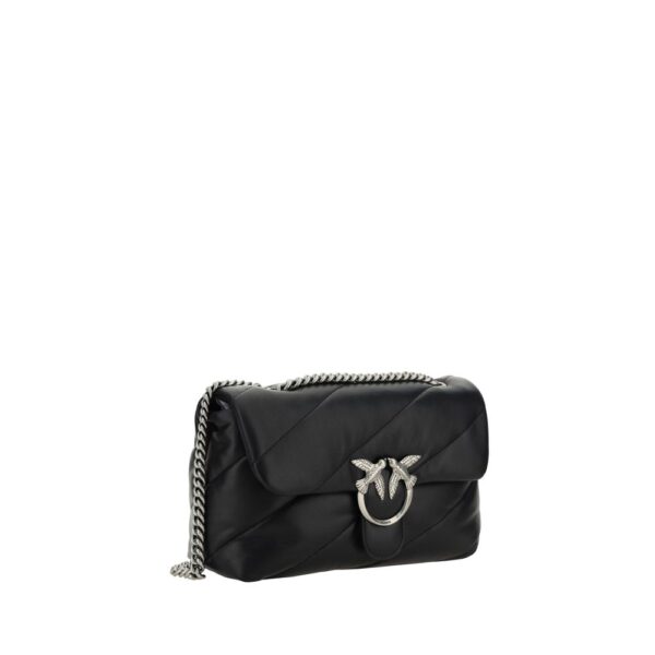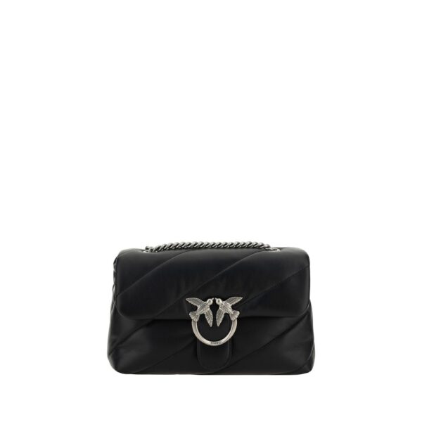 Calfskin Love Classic Shoulder Bag by Pinko, front closure with magnetic button, iconic gold-plated Love Birds logo embossed on the front, quilted and padded design, double internal compartment, sliding chain shoulder strap, iconic brand monogram embroidered tone-on-tone on the back.