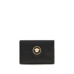 The La Medusa Shoulder Bag by Versace is an elegant and iconic accessory, embellished with the distinctive metal La Medusa detail applied to the front flap. Equipped with a practical interior slit pocket, it features a magnetic snap button closure and a removable chain strap, allowing it to be worn on the shoulder or as a clutch for a versatile and sophisticated style.