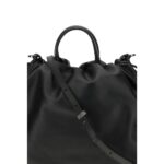 Leather Shoulder Bag by Brunello Cucinelli featuring two flat top handles, drawstring closure, adjustable and removable shoulder strap, single compartment, iconic brand monogram press-stamped on front, monochrome pattern.