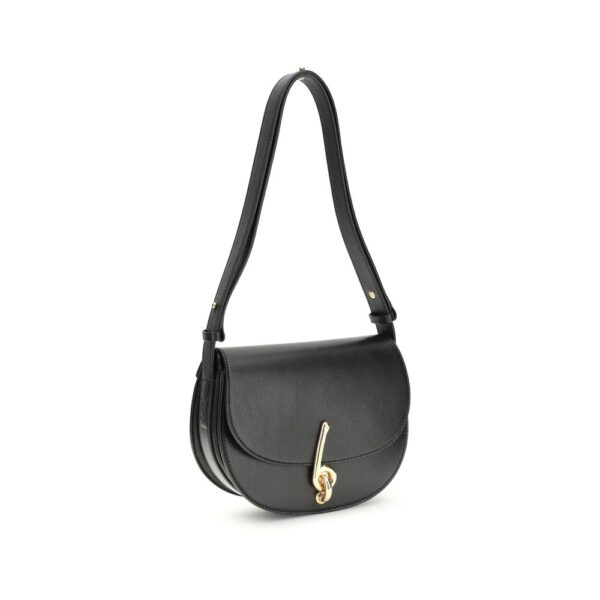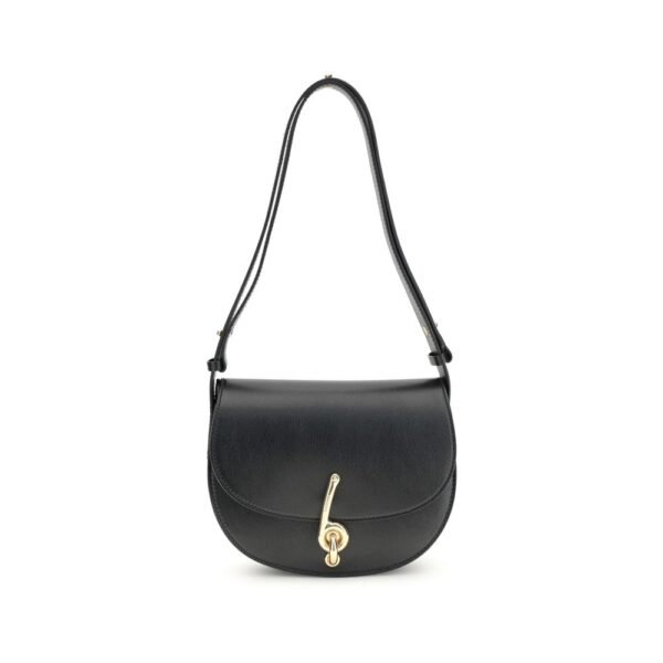 The small Bridle Shoulder Bag by Burberry is an elegant example of British craftsmanship and style. Crafted with a leather interior and hand-painted edges, it is distinguished by its fold-over flap with magnetic closure embellished with the “B” clasp, the iconic symbol of the house. Equipped with an adjustable shoulder strap, it offers practicality and comfort, while the exterior pouch pocket and two interior ones ensure optimal organization. Brushed metal hardware and Burberry lettering stamped on the inside complete the design for a touch of discreet and timeless sophistication.