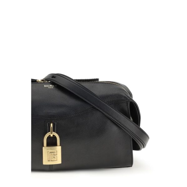 The Pulse Shoulder Bag by Balmain is an elegant, soft baguette-style model, perfect for adding a sophisticated touch to your look. It can be carried by hand, on the shoulder, or across the body thanks to its adjustable and removable leather handles with snap hook closures for easy customization. The lock with embossed PB logo and the embossed Balmain Paris logo on the body of the bag add a distinctive and luxurious detail. The leather lining and gold-tone metal details complete the design, making this bag an exclusive and functional accessory.