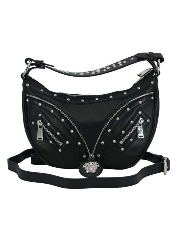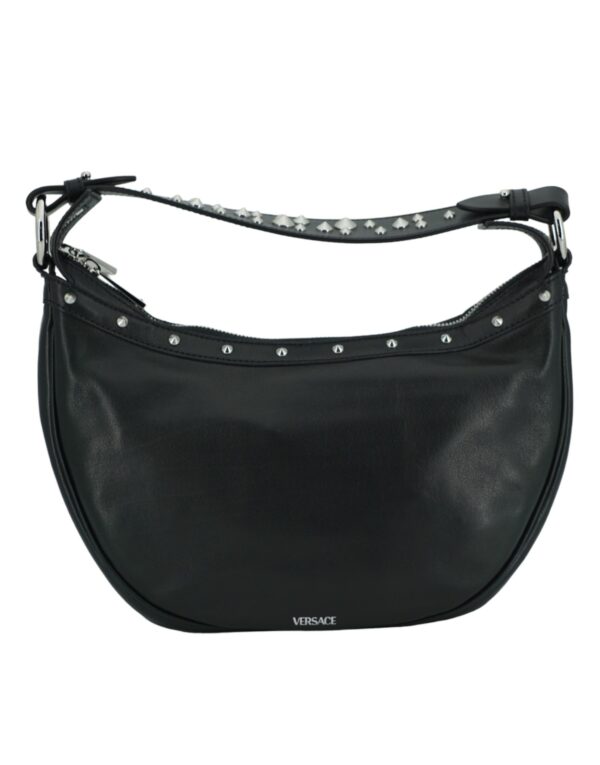Versace - Black Calf Leather Small Hobo Shoulder Bag
