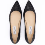 100% Authentic Jimmy Choo Black Coarse Glitter Fabric Alina Bellet Flat