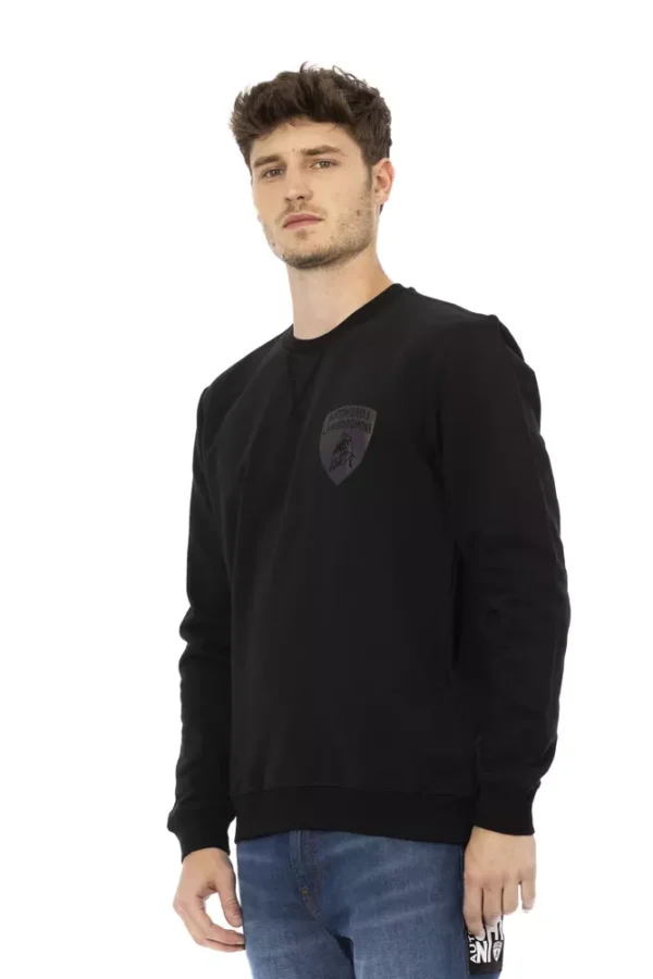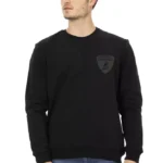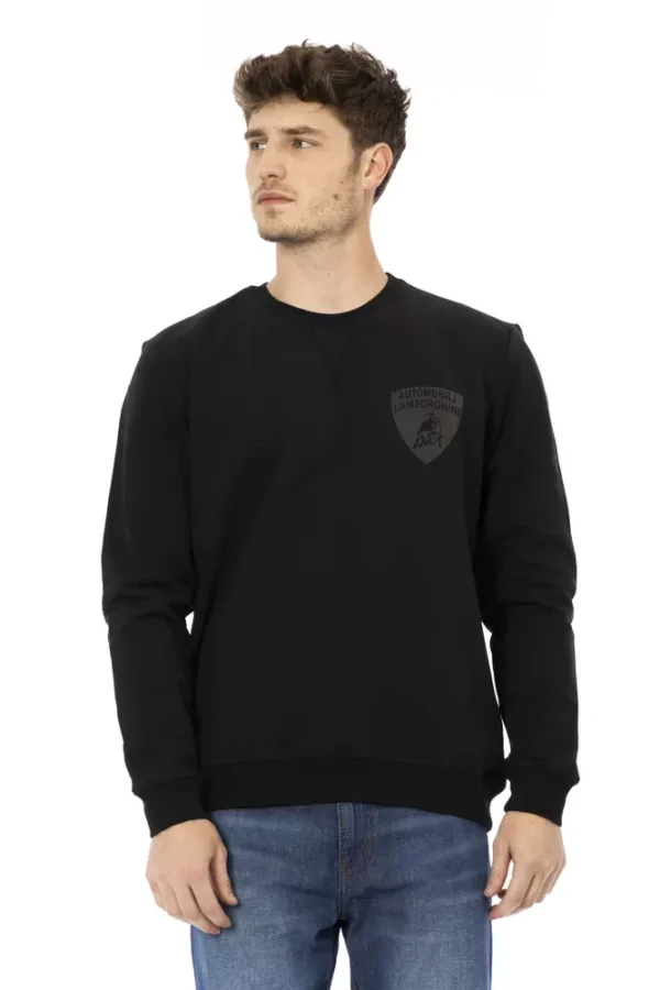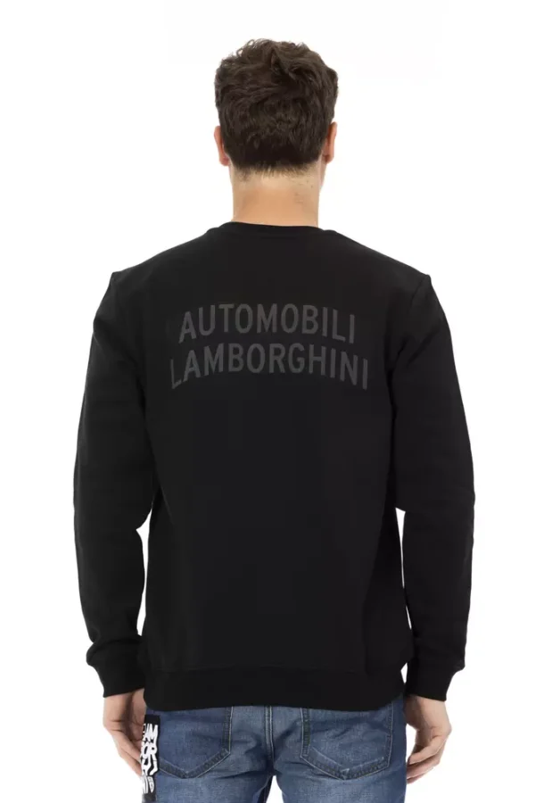 Elevate your casual wardrobe with the unmistakable edge of Automobili Lamborghini. This sleek black crewneck sweatshirt is emblazoned with the iconic shield logo on the chest and striking rear lettering print, symbolizing luxury and high performance. Crafted from a premium blend of cotton and elastane, it ensures a comfortable fit with a touch of stretch, all while maintaining its shape. Experience the perfect fusion of fashion and automotive excellence with every wear.