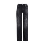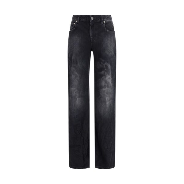 The Cotton Denim Jeans feature a faded, worn-in look with a slightly crinkled finish. With a mid-rise waist, hidden zip fly, five belt loops, and five pockets, they combine casual style and practicality in a versatile piece.