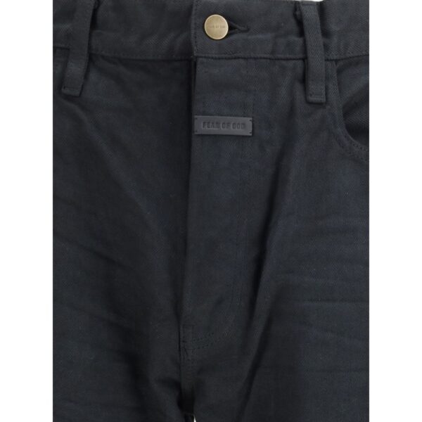 Final Cost: After CouponThe denim Jeans by Fear of God reflect the brand’s refined and minimalist aesthetic. Crafted from pure cotton denim, they feature a concealed button closure with a single exposed button, classic five-pocket design, and belt loops at the waist. A tonal leather logo patch on the front adds a subtle signature detail, completing this timeless piece with modern edge.