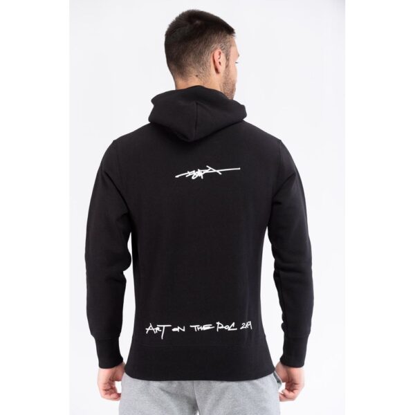 n– Features: Hood, Zip, 2 Central Pockets, Print, Logo