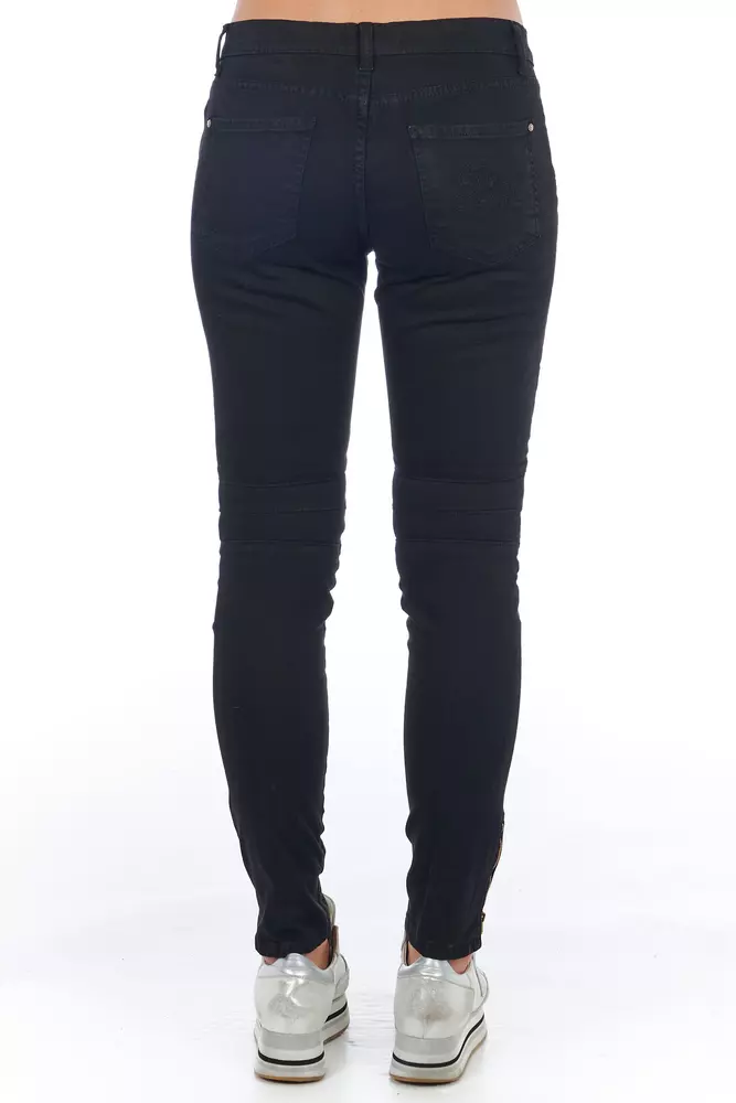 Step into effortless rebellion with Frankie Morello’s Biker Stretch Denim Jeans. Designed to capture the essence of chic versatility, these low-waisted jeans with a worn wash exude an edgy yet polished aesthetic. Perfectly balanced with stretch for comfort, they flaunt a daring attitude with multiple pockets. Finished with a zip and button front closure, they’re a staple for those who command attention with understated cool.