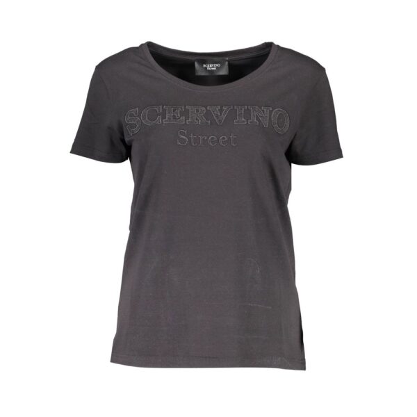 Elevate your wardrobe with a touch of Italian sophistication. The Scervino Street short-sleeve t-shirt spellbinds with its wide neckline and contrasting details. Opulent embroidery and the iconic logo enliven the pristine black background. Crafted from a sumptuous blend of cotton and elastane, this top is as comfortable as it is chic, a true exemplar of casual luxury.