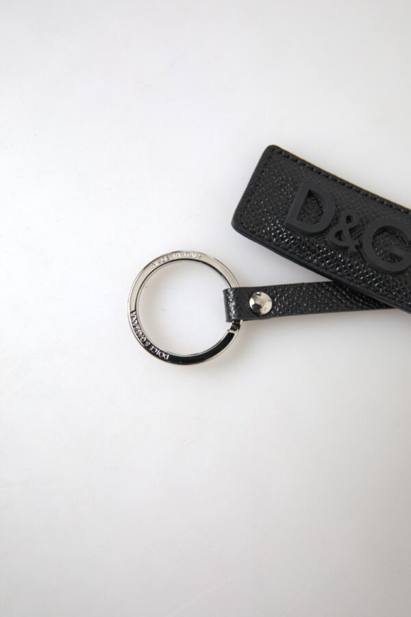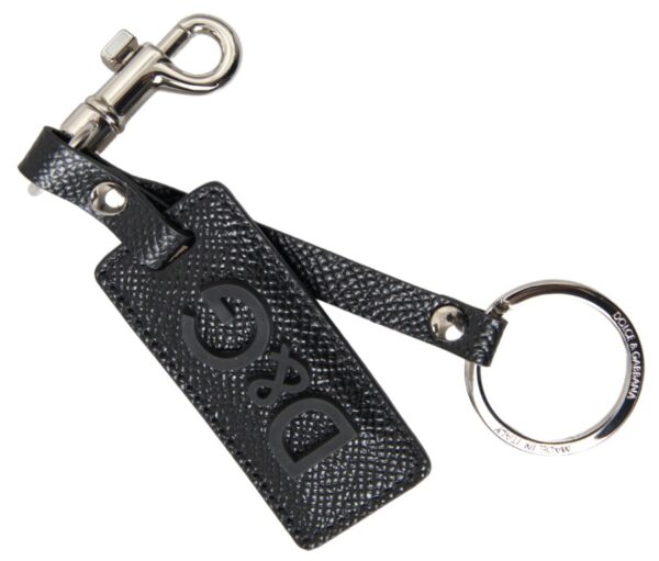 Dolce & Gabbana - Black DG Logo Leather Silver Metal Keychain