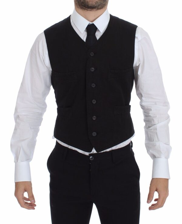 Absolutely stunning, 100% Authentic, brand new with tags Dolce & Gabbana black cotton and flax blend Dress Vest. This item comes from the MainLine Dolce & Gabbana collection.