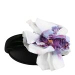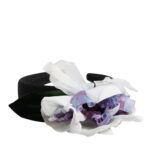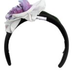 Absolutely stunning, 100% Authentic, brand new with tags Dolce & Gabbana Headband.This luxurious hair accessory features a black base with green velvet sides, beautifully adorned with a large appliqué flower in purple and white tones. Handcrafted in Italy with silk and viscose for an elegant, romantic look. Perfect for weddings, evening events, or as a statement piece.