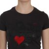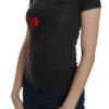 Exte - Black Hearts Print Short Sleeve Casual Shirt Top