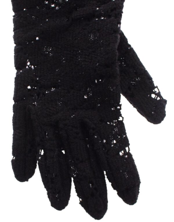Dolce & Gabbana - Black Lace Wool Lambskin Fur Elbow Gloves