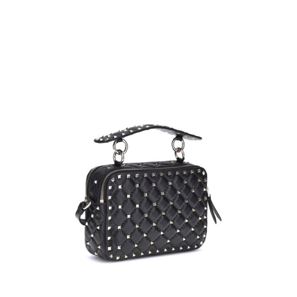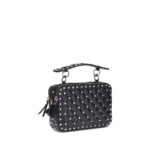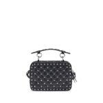 Valentino Garavani’s Rockstud Spike Shoulder Bag combines elegance and character with diamond-quilted workmanship embellished with gold-tone Rockstud studs across the surface. Featuring a removable studded black leather top handle and an adjustable smooth leather shoulder strap, it offers maximum versatility. The interior is organized with two main zippered pockets and three handy card slots. A bold and refined accessory perfect for standing out.