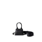 Jacquemus Black Leather Mini Le Chiquito Bag. In black leather, front opening with hidden snap button, single compartment. Silver metal logo on the side.