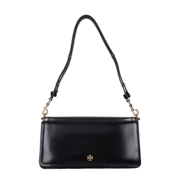 nThe product with MPN 157620001 and code F83374 patent leather in black is a shoulder bags designed by Tory Burch. It has features like front logo, adjustable handle, removable handle, divider inner pocket.