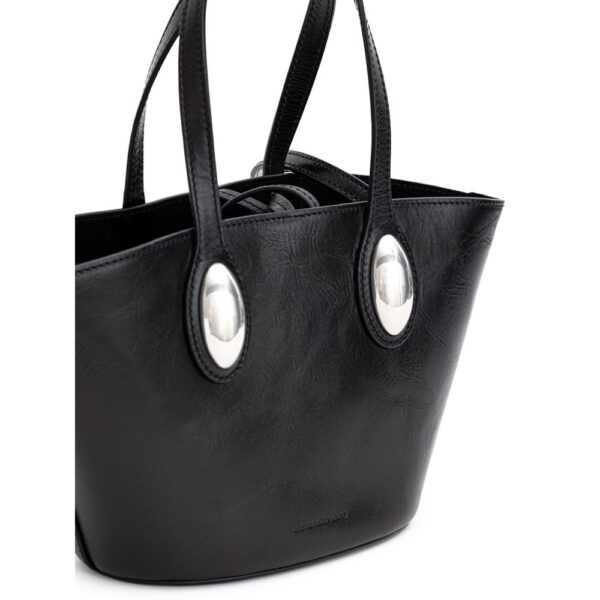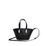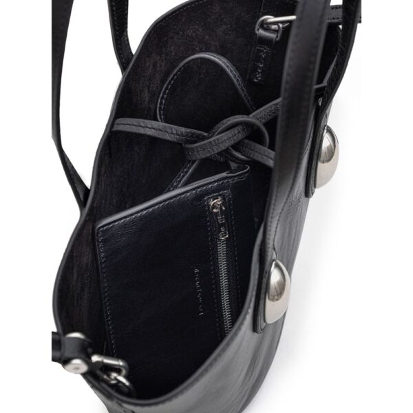 Alexander Wang Mini Tote Dome Bag. Black leather, top knot closure, single compartment, removable interior pouch, two handles with exposed metal details, tone-on-tone front engraved logo, adjustable and removable shoulder strap. Composition: 100% Leather