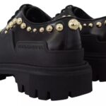 Gorgeous, brand new with tags 100% Authentic Dolce & Gabbana black Trekking derby. The model is made of soft polished leather, and the lapel-style inserts on the side panels are made of dense rubber. The masculine character of the pair on a chunky tread sole is balanced by the decorations, a pattern of shiny gold studs on the cape.