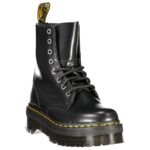 Elevate your footwear game with the edgy allure of DR.MARTENS. This unisex Jadon boot is a statement of rebellion and sophistication, fused into a sleek black polished-smooth exterior. With an eye-catching 5 cm wedge and bold contrasting details, these boots are designed for those who dare to stand out from the crowd. The functional laces are complemented by a convenient side zip, allowing for a perfect fit that’s as effortless as it is stylish. Make your mark with a logo that speaks volumes about your fashion-forward sensibilities.