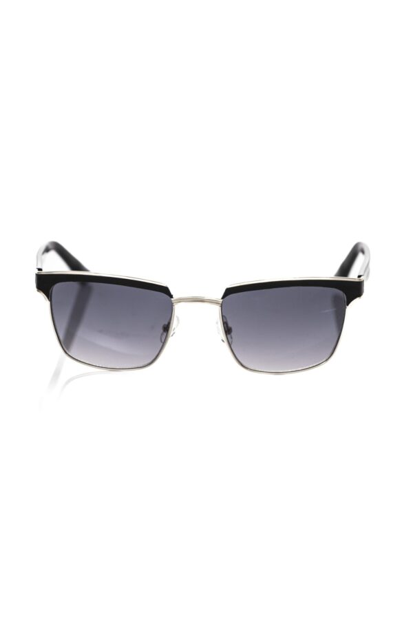 Indulge in the edgy sophistication of Frankie Morello with these Clubmaster model sunglasses. Meticulously crafted with an upper profile in luxe black leather, this pair is designed to exude confidence and style. The black shaded lens are quintessential for a fashion-forward statement, while the sleek black arms ensure a refined finish. Perfect for trendsetters seeking to make their mark with an iconic Italian touch.