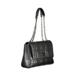 Elevate your accessory game with the eco-conscious chic of this Calvin Klein handbag. Effortlessly versatile, it boasts a sleek black hue with contrasting details that add a pop of sophistication. Two chain handles provide a glamorous touch while the turnbuckle closure secures your essentials. Practical yet fashionable, it comes with an external pocket and roomy dual compartments, including an internal pocket for organization. Made from 100% recycled polyester, this bag is as kind to the planet as it is to your style.