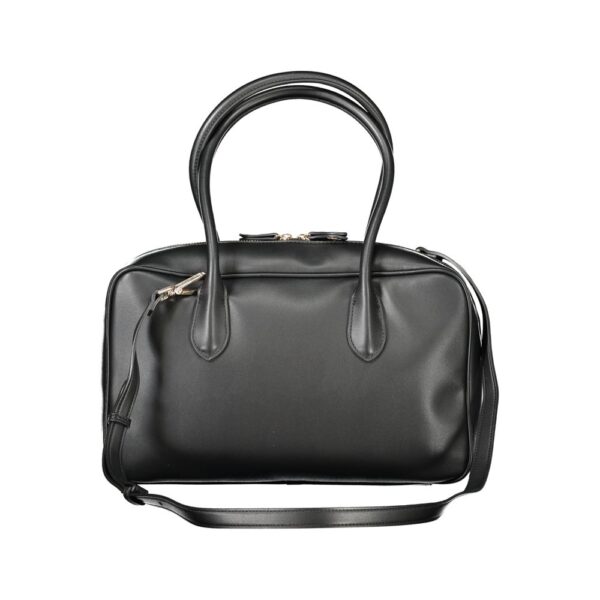 Elevate your accessory game with a statement piece from Twinset that exudes both elegance and practicality. This chic handbag showcases a sleek black color that matches effortlessly with any outfit. Perfect for the modern woman on the go, it features a top handle, two comfortable handles, and an adjustable/removable shoulder strap for versatile styling. The interior is thoughtfully designed with an internal pocket and dedicated phone spaces, secured with a zip closure to keep your essentials safe. Topped with a distinct Twinset logo for a touch of brand prestige.