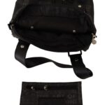 Elevate your accessory game with Pompei Donatella’s luxurious convertible handbag. A fusion of elegance and versatility, this black crocodile-print leather masterpiece can seamlessly switch from a chic shoulder bag to a trendy backpack. Adorned with adjustable straps and the signature DP logo lining, it is a testament to exquisite Italian craftsmanship. Keep it pristine with the included dust bag, and let the visible logo proclaim your penchant for high fashion. Perfect dimensions ensure it’s your go-to for all occasions.