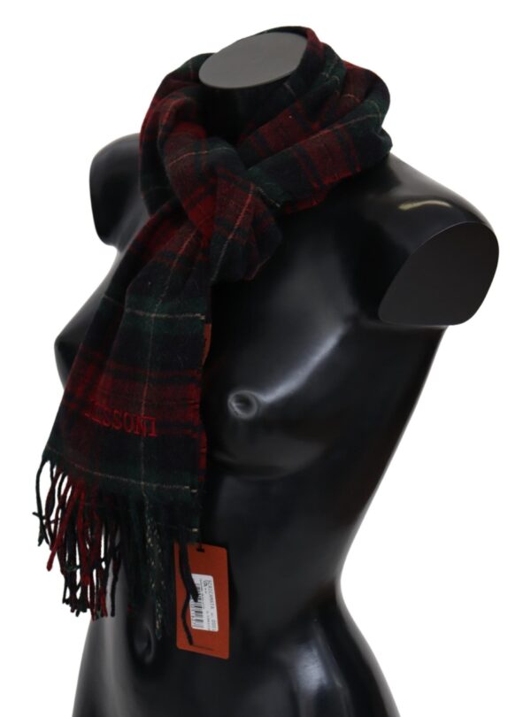 Gorgeous brand new with tags, 100% Authentic Missoni virgin wool scarf with check pattern and brand logo embroidery.