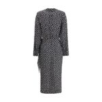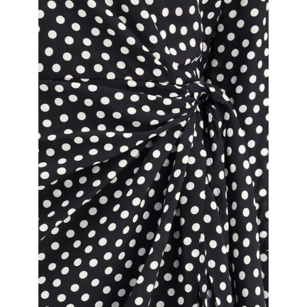 The Como Dress in Crêpe de chine by Crida Milano is a garment with sophisticated and feminine appeal. The wrap model, with its draping on the front, creates a fluid and enveloping effect that enhances the figure. The V-neckline adds a touch of sensuality, while the polka dot pattern gives a playful yet elegant character. The tie bow on the left hip introduces an element of originality, gently emphasizing the silhouette. An elegant drape created by a side stop at the waist gives the dress an unprecedented and refined note, making it perfect for special occasions or a sophisticated daytime look. The crepe de chine fabric adds a touch of luxury and comfort, making this dress a true classy wardrobe piece.
