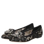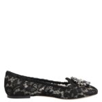 Dolce & Gabbana - Black Taormina Lace Crystals Flats Shoes