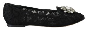 Gorgeous, brand new with tags 100% Authentic Dolce & Gabbana elegant Vally shoes are exquisitely crafted in Italy from the finest Taormina lace. These pretty floral lace Vally slippers will instantly lift your look to new sartorial heights. Featuring an almond toe, a branded leather insole and a wearable flat leather sole, these beauties are finished with a sparkling decorative crystal flower on the front.
