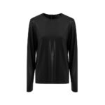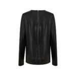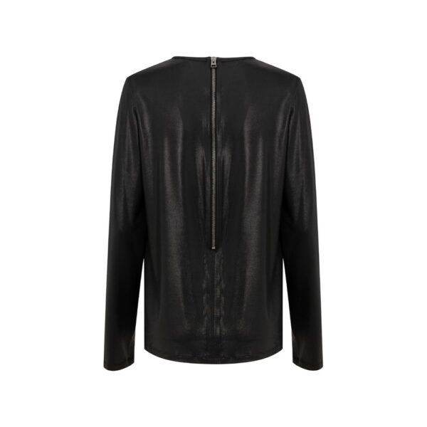 Long-sleeved sweater in stretch viscose with a slightly shiny finish. It features a round neck and a full-length zip back closure. The soft fabric ensures a loose fit. Composition: 95% viscose, 5% elastane.