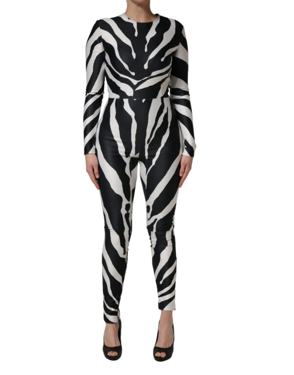 Dolce & Gabbana - Black White Polyester Zebra Pattern Jumpsuit