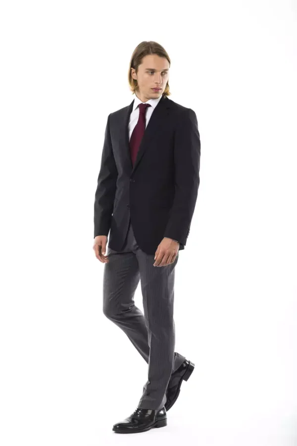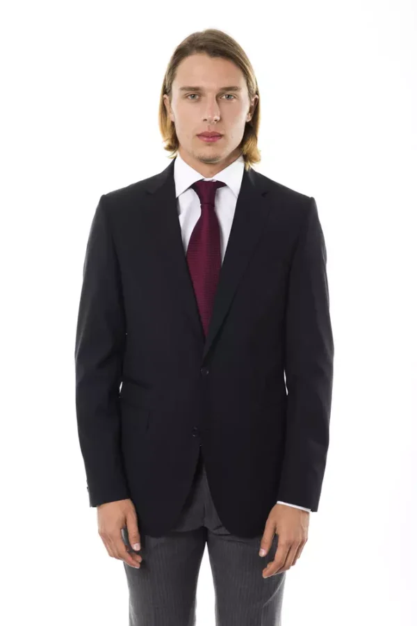 Exude effortless sophistication with Uominitaliani’s tailored black wool jacket. The quintessence of classic style, it’s designed with sharp lapels and neatly framed by two front flap pockets. Secured with a distinguished two-button closure, this blazer becomes an embodiment of modern elegance with an Italian touch. Perfect for those who make bold sartorial statements.
