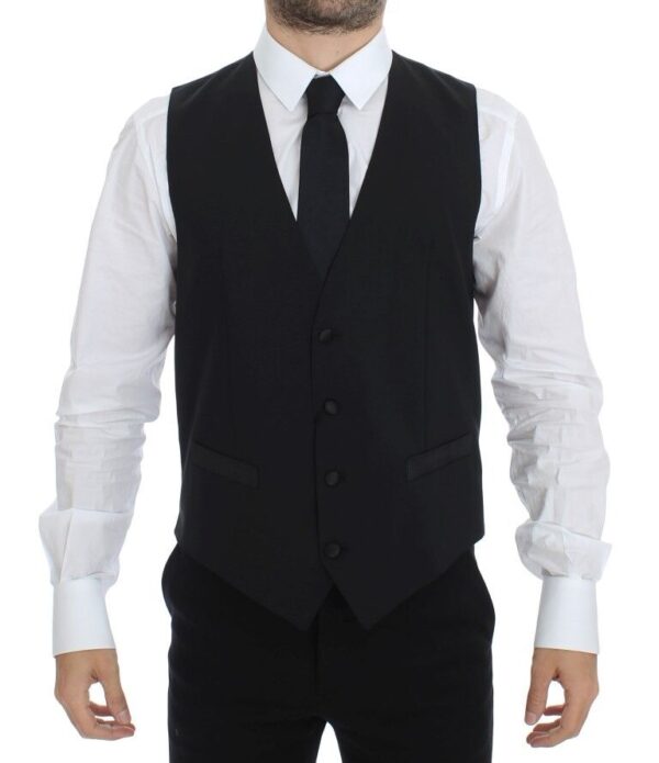 Absolutely stunning, 100% Authentic, brand new with tags Dolce & Gabbana black silk wool stretch Dress Vest. This item comes from the MainLine Dolce & Gabbana collection.