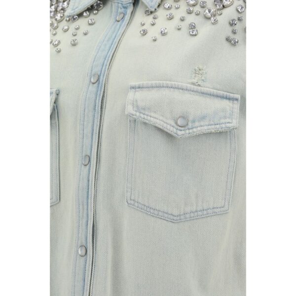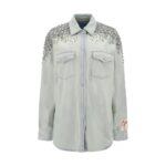 Final Cost: After CouponCotton Boyfriend Shirt by Golden Goose, classic collar, pearl snap button front closure, two front patch pockets with flap for closure, adjustable button cuffs, bright beaded and beaded appliqués embossed on shoulders, oversize fit.