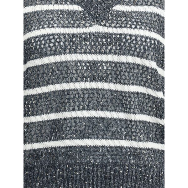 Final Cost: After CouponBrunello Cucinelli’s striped Vest is a sophisticated garment that combines craftsmanship and fine details. Made with a loose weave, it is distinguished by a V-neckline and ribbed hems, which give structure and definition to the model. The striped pattern is embellished with all-over applied micro sequins, which discreetly catch the light and add a touch of elegant luminosity.